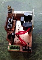 Controller- und Basisplatine, dazu das Messmodul. Gehäuse mit 3TE - daher die ersten Version mit einer stehenden Controllerplatine.